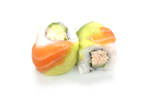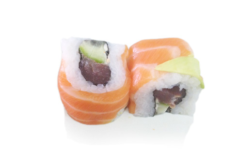 Fantasy ciel (saumon, sauce spicy, concombre, mayonnaise enroulés de thon et avocat)