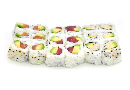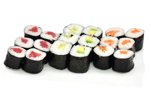18 Maki (6 saumon, 6 thon, 6 avocat/concombre)