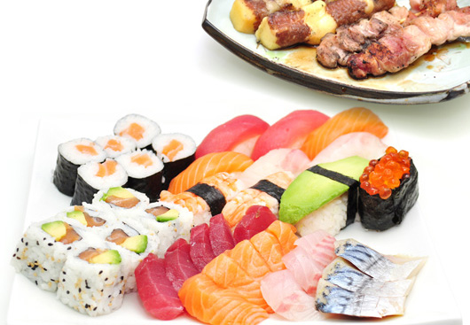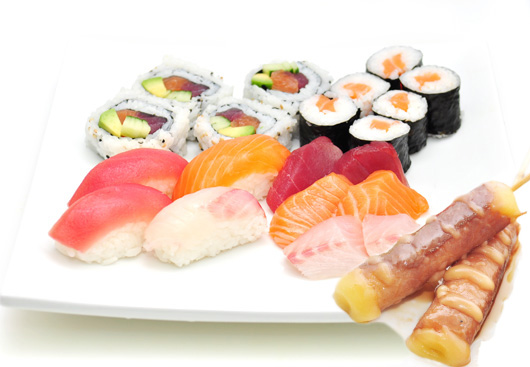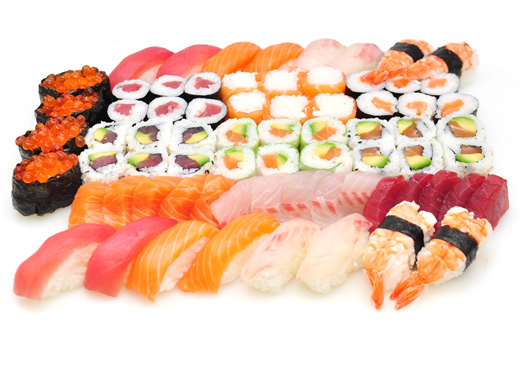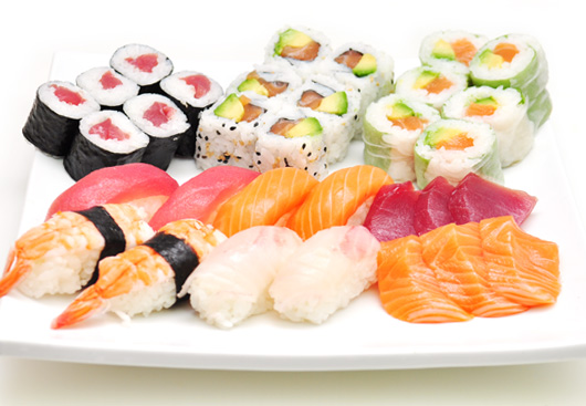 4 Sushi saumon, 4 Sushi thon, 4 Sushi crevette,4 Sushi daurade, 4 Oeufs de saumon, 6 Maki saumon, 6 Maki thon, 6 Saumon rolle, 6 California thon avocat, 6 Japon rolle, 6 California saumon avocat, 15 Sashimi (5 saumon, 5 thon, 5 daurade)